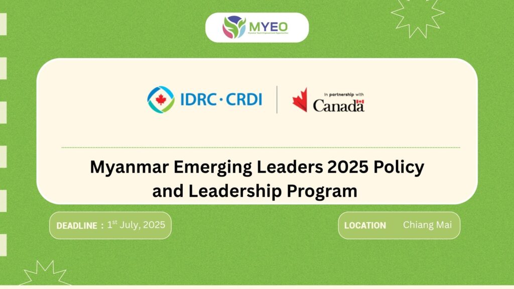Type Exchange Program Description: Teaching experience တွေရှိပြီး English language ကို ကျွမ်းကျင်မယ်ဆို ဒီ တနှစ်ပရိုဂရမ်လေးကို လျှောက်ကြည့်ပါ။ အမျိုးသမီးလေးတွေအတွက်ဖြစ်ပြီး Cambodia မှာ သွားရောက်နေထိုင်ပြီး တက်ရောက်ရမှာဖြစ်ပါတယ်။ Allowance တွေနဲ့ဖြစ်တာကြောင့် လျှောက်ကိုလျှောက်သင့်တာလေးပါ။ Location: In-person, Cambodia Benefit: Fully-Funded Deadline: 14th July, 2025 Application: https://docs.google.com/forms/d/e/1FAIpQLSdTFaLLsGi4etXdZW4qR_hUx4CfkLH7-0ZKfxAeLrudZTo5qw/viewform More information: https://harpswell.org/leadership-residents?fbclid=IwY2xjawLO75dleHRuA2FlbQIxMABicmlkETFtTUVjcUZleTB0OFNmMWw4AR5naic_LeG0Uylz-Xmhxe7995t9Yij3Hjnze2LteCWw0w2yPxlDyEeNGV9Axw_aem_mxdrz2HRFsjLoLAkkT4a6Q