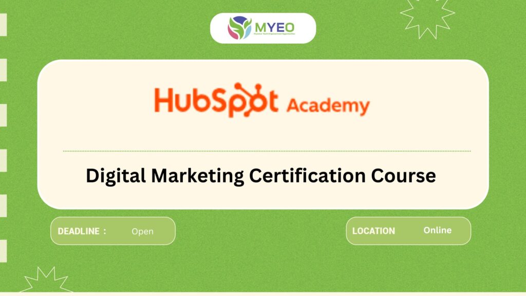 Type Free Course Description: Digital Marketing free course လေးဖြစ်ပါတယ်။ Digital marketing ကိုစိတ်ဝင်စားသူတိုင်း လေ့လာနိုင်ပါတယ်နော်။ free certificate လည်းရရှိမှာဖြစ်ပြီး လေ့လာချိန်ကြာမြင့်ချိန်ကတော့ ၃နာရီခွဲလောက်ကြာမြင့်မှာဖြစ်ပါတယ်။ လေ့လာကြည့်ဖို့ အကြံလေးပေးပါတယ်နော်။ Location: Online Benefit: Free course Deadline: Open More information: