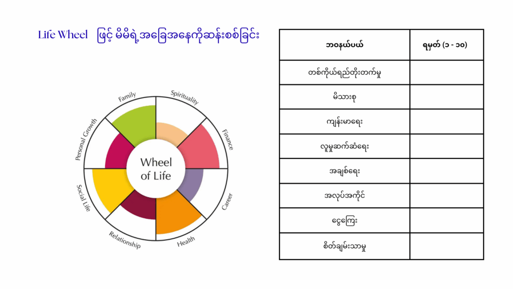 (၅) Life Wheel ဖြင့် ရည်မှန်းချက် ချမှတ်ခြင်း