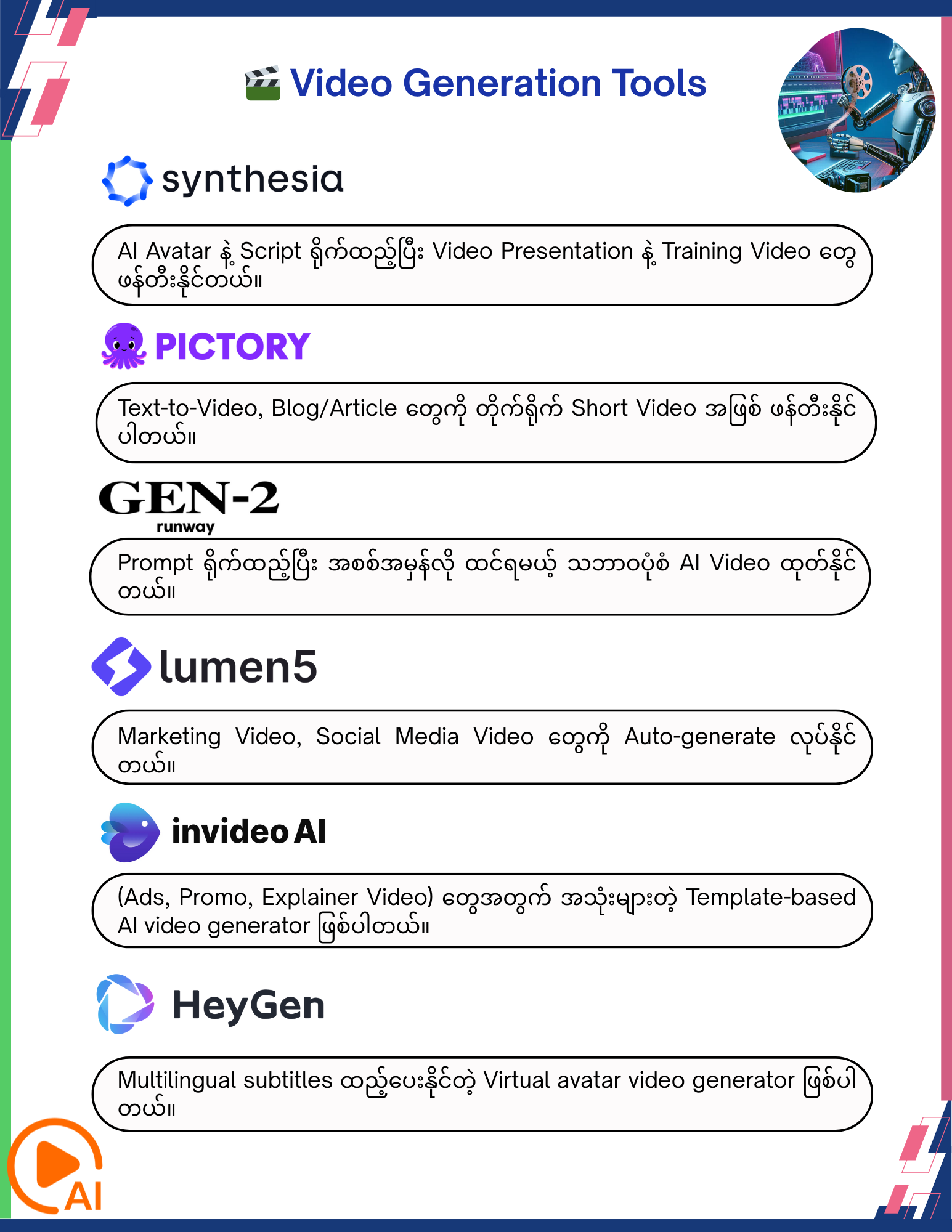 ✅ AI Tool Selection (AI ကိရိယာ ရွေးချယ်မှု)