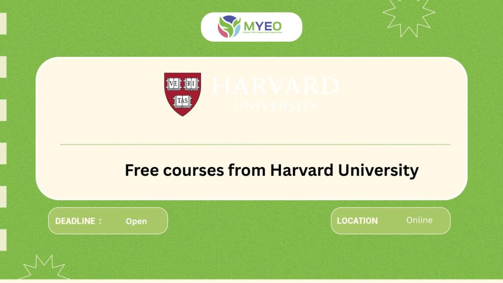 Harvard University ကနေဖွင့်လှစ်ပေးတဲ့ free course လေးတွေဖြစ်ပါတယ်။ ဘယ်လို course လေးတွေလဲဆိုတာကိုတော့ ကိုယ်တိုင်ဝင်ရောက်လေ့လာကြည့်ကြည့်နော်။ နယ်ပယ်စုံတာကြောင့် စိတ်ဝင်စားတဲ့ အကြောင်းအရာကို လေ့လာနိုင်ပါတယ်။