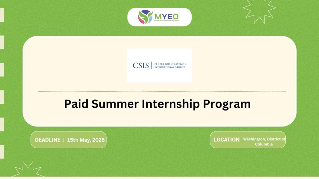 လက်ရှိ အမေရိကန်ကျောင်းတက်နေတဲ့ မြန်မာနိုင်ငံသားတွေလည်း လျှောက်လို့ရတာမလို့ ဝေမျှပေးလိုက်ပါတယ်နော်။ အခု အခွင့်အရေးကတော့ Center for Strategic and International Studies (CSIS) မှ ပေးအပ်ထားသော internship ဖြစ်ပြီး၊ Washington, DC တွင် research နှင့် policy analysis ဆိုင်ရာ အတွေ့အကြုံ ရရှိနိုင်ရန် ရည်ရွယ်ထားပါသည်။